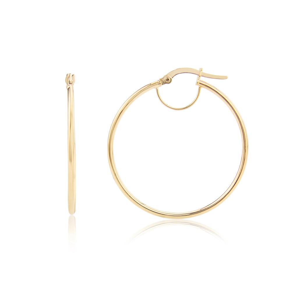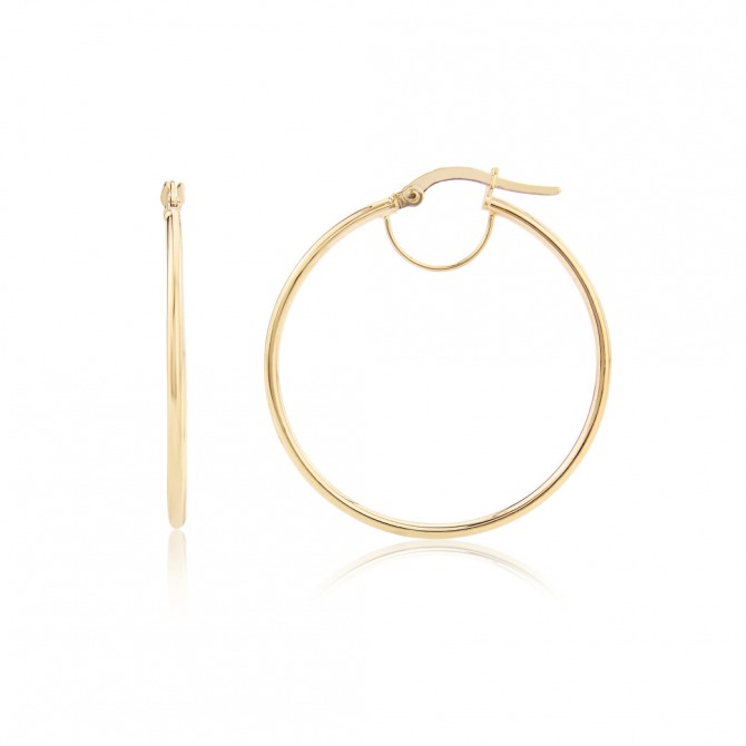Sometimes, the simplest things are the most beautiful. And no more so than these perfect hoop Earrings in Yellow Gold. They feature an easy to use hinged fastening and an extra half loop which sits under the ear lobe for added security and comfort. This little detail also helps to keep the Earrings in place. Available from our Classic Gold Collection in White or Rose Gold & in other sizes.