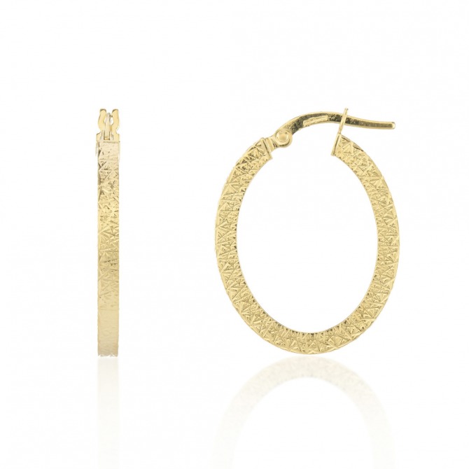 9ct Gold Square Diamond Cut Textured Hoop Earrings