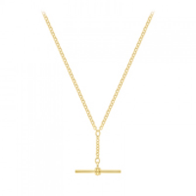 9ct gold T-Bar Necklace with an 18" belcher chain.
