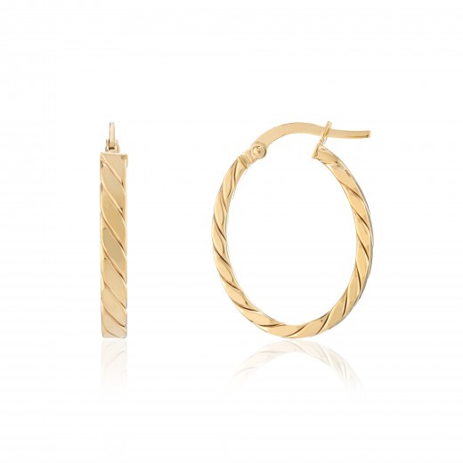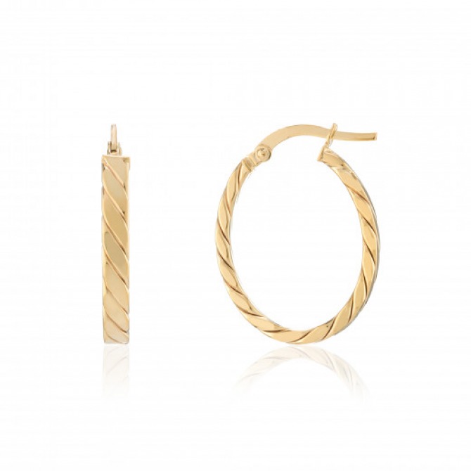 9ct Gold Twist Oval Hoop Earrings