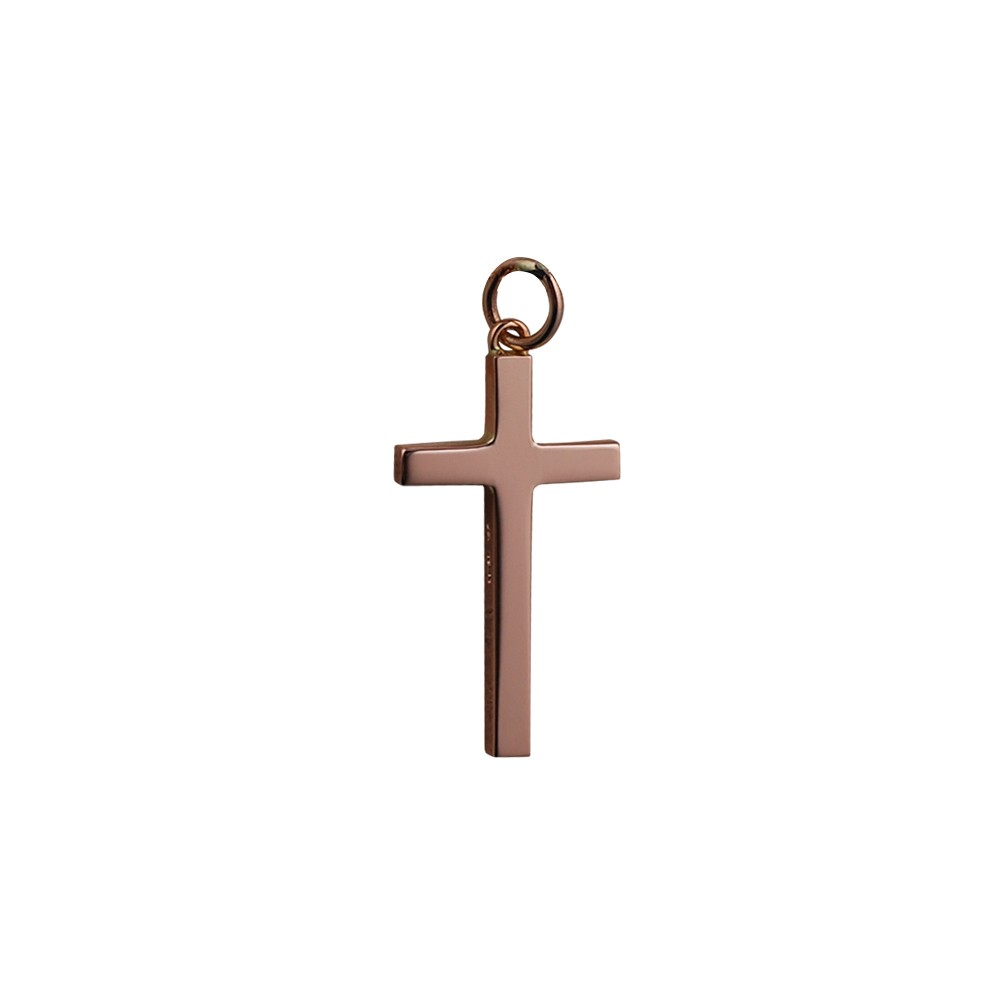 9ct rose gold 25x15mm plain solid block Cross. Handmade from 2.5 mm by 2.5 mm square wire, the back and sides are plain highly polished. Handmade and hand polished in our Birmingham factory. Please note due to the Handmade nature of this product weights, dimensions & measurements can slightly vary.
