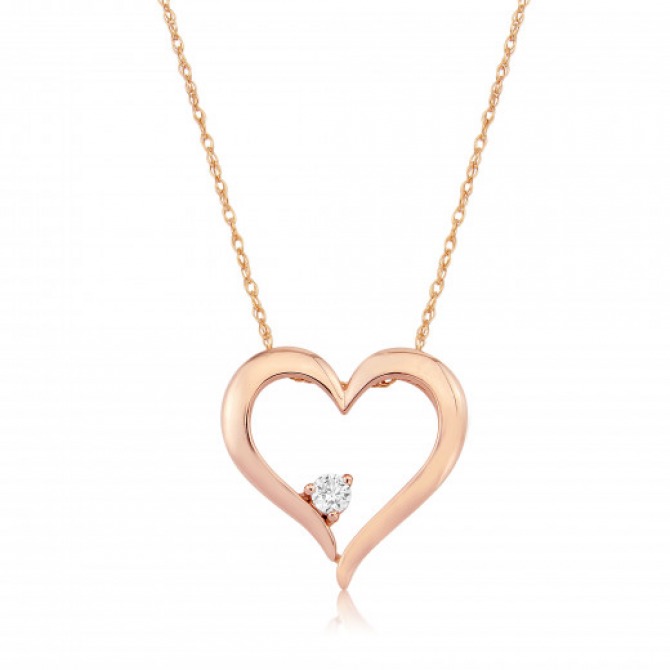 9ct Rose Gold & Diamond Heart Pendant Necklace