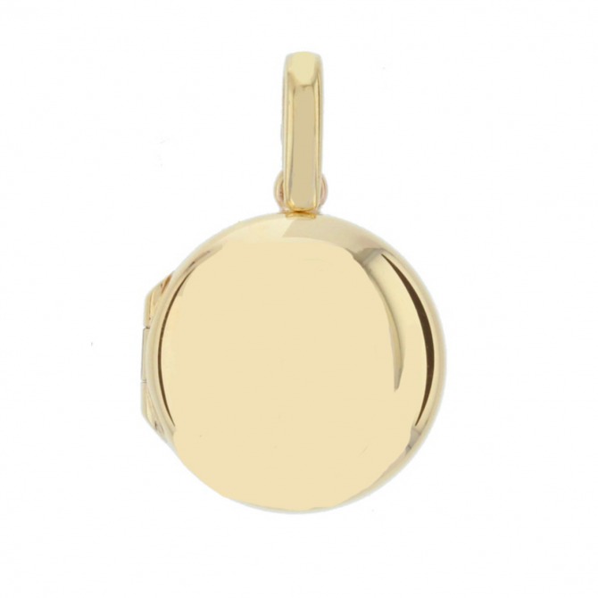 9ct gold round locket measuring 16mm x 16mm (not including the bail). This locket is delicate, contemporary, & perfect for a long chain.