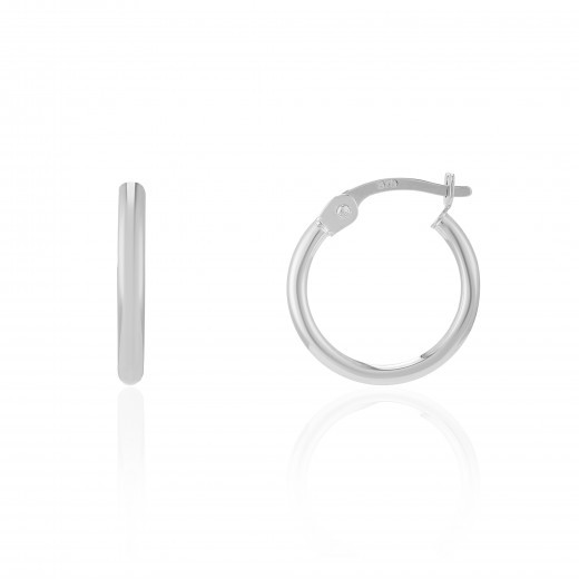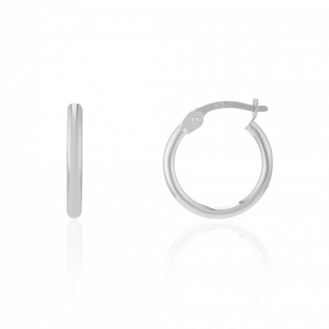 9ct white gold 10mm plain hoop earrings with a hinged fastener.