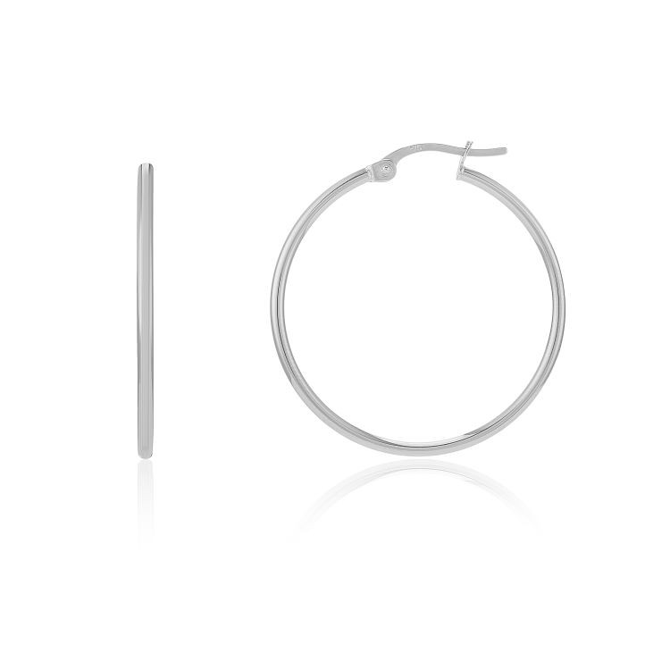 9ct white gold 25mm hoop earrings.