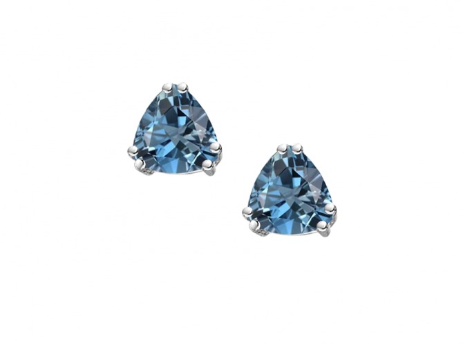 9ct white gold stud earrings set with trillion cut blue topaz.