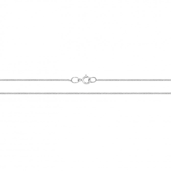 9ct white gold close curb chain. Stocked in 18".