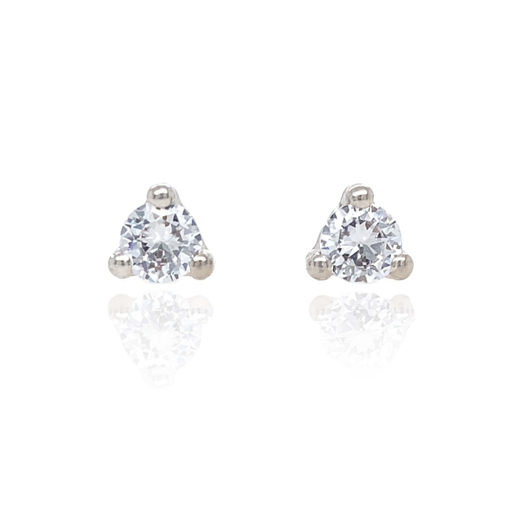 Quirky little White Gold studs with a triangular design & a single claw-set round Cubic Zirconia in each Earring. A modern take on the classic Gold stud Earrings style.