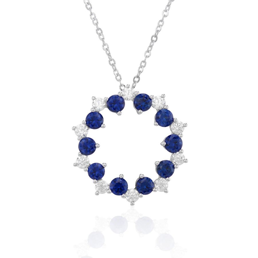 9ct White Gold with CZ & Created Sapphire Circle Pendant Necklace