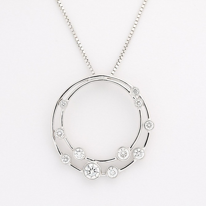 9ct white gold halo style necklace set with diamonds. 0.49ct.
