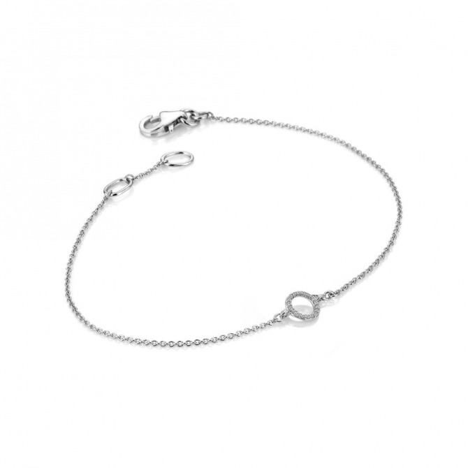 From the Hot Diamonds Infinity Collection: Infinity Bracelet in rhodium plated 9ct white gold with 18 diamonds; the chain length is 15-16 cm and the circular motif is 5mm across. With no beginning and no end this enchanting range flows in a constant stream of sparkling diamonds set in 9ct gold.