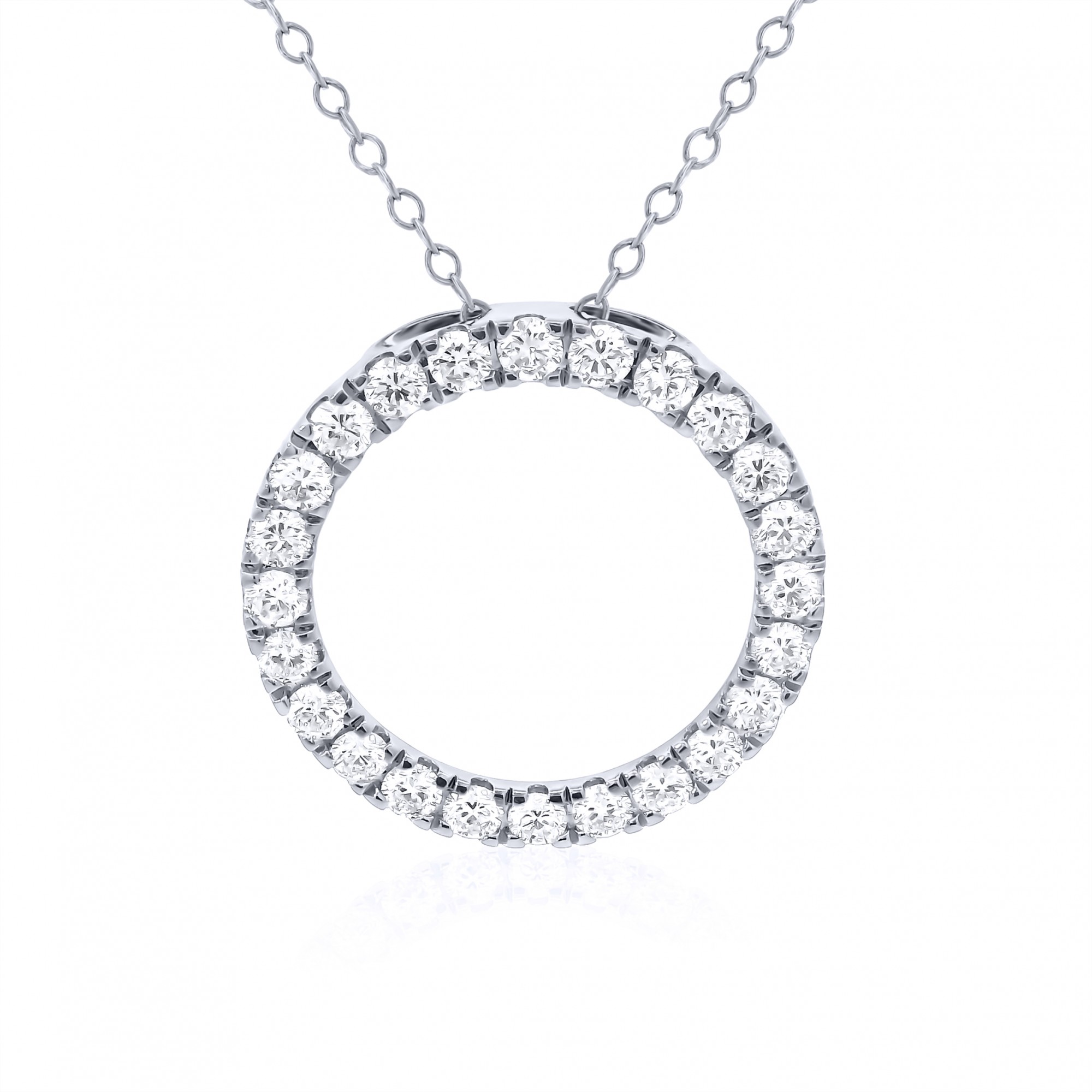 This stunning 9ct white gold halo pendant features claw set round brilliant cut lab grown diamonds suspended from a 9ct white gold trace chain. The perfect addition to any jewellery box. D-E. VS1. 1.00ct.