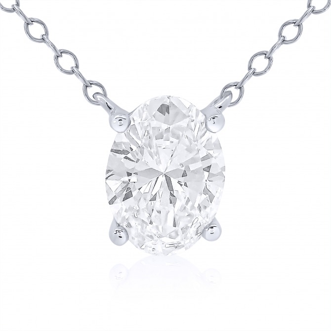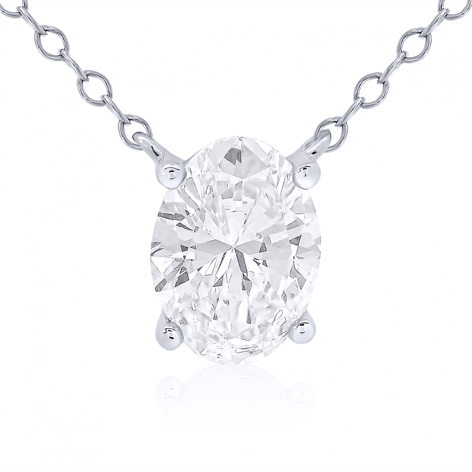 9ct white gold necklace with a claw set single oval cut lab grown diamond. D-E. VS1 1ct.