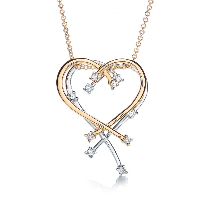 9ct White & Yellow Gold Diamond Heart Neckalce