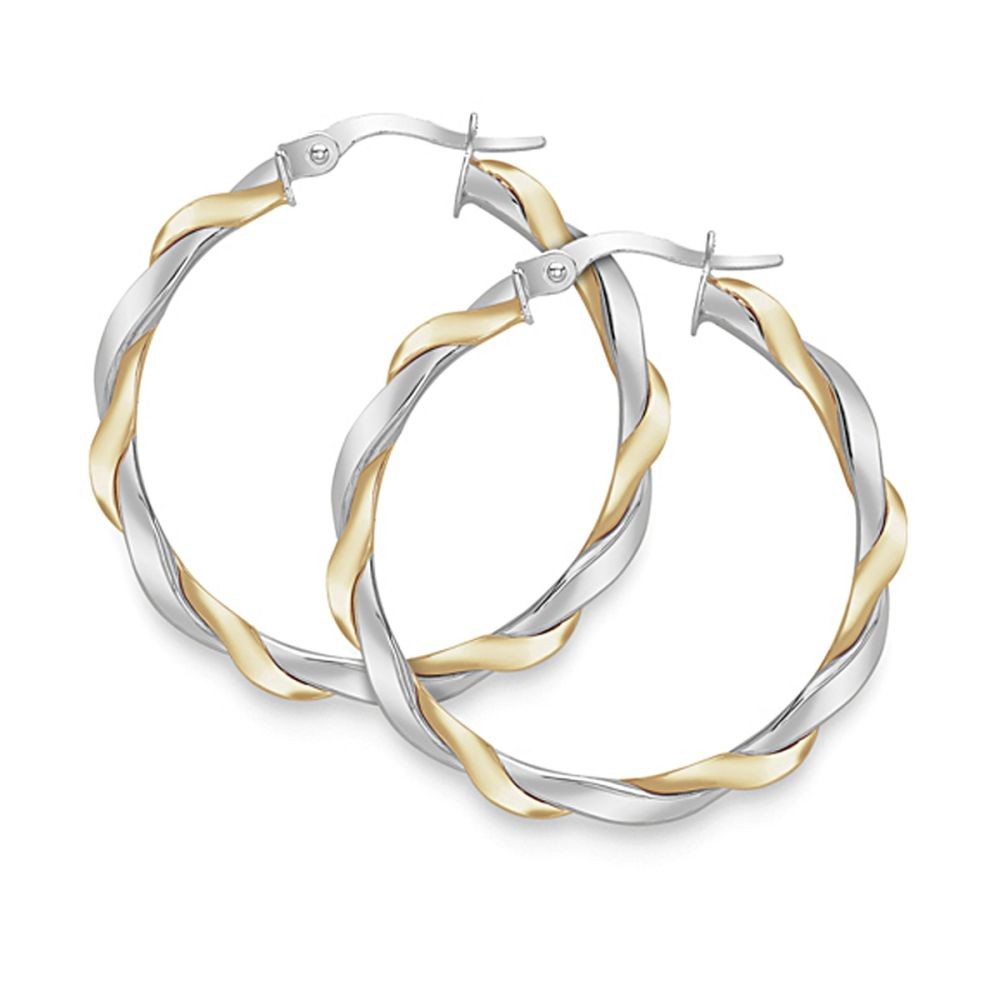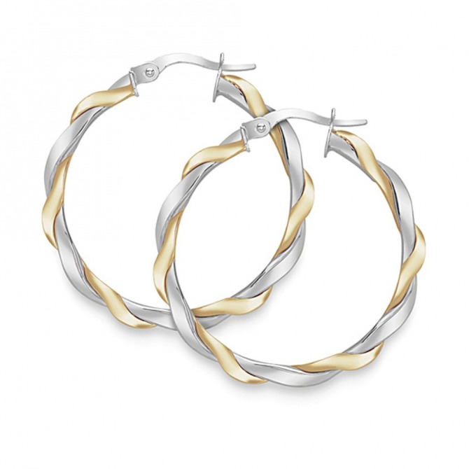 9ct White & Yellow Gold Large Hoop Earrings