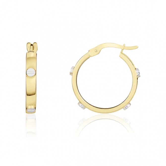 9ct White & Yellow Gold with Screws Hoop Earrings