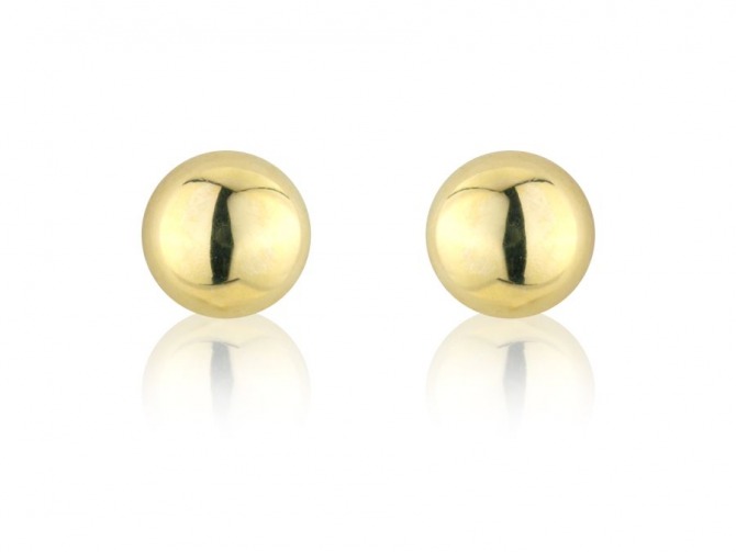 Classic half-bead Stud Earrings in fine nine carat Yellow Gold. Minimalist yet elegant, these affordable earrings are always a well-received gift and tie together any jewellery collection, being a graceful accessory to wear anywhere and everywhere.