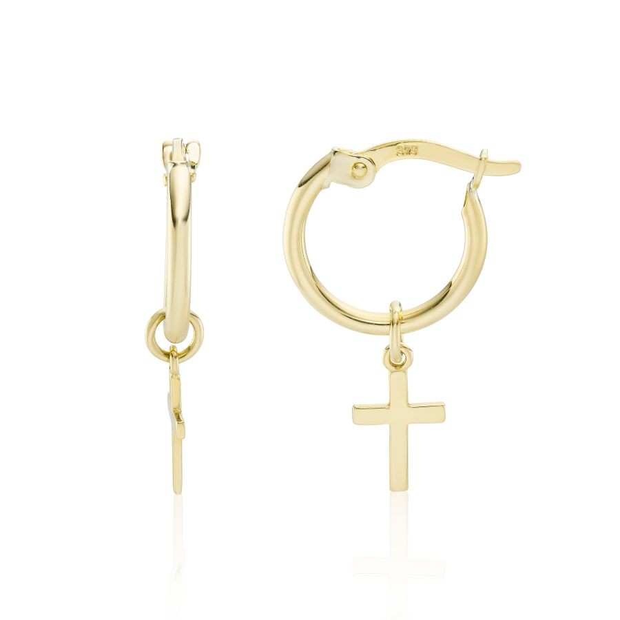 9ct Yellow Gold Hoop with Cross Earrings
