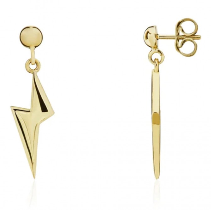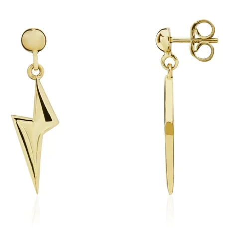 9ct yellow gold drop earrings with a striking lightening bold design.