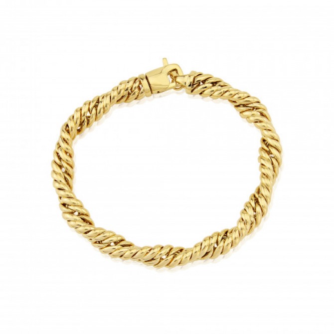 A Yellow Gold Bracelet with definite 'Wow' factor! A continuous twisted link design and substantial levered fastening make this a bold and versatile piece. Ramp up workwear or add to your favourite party outfit with the matching Necklace.