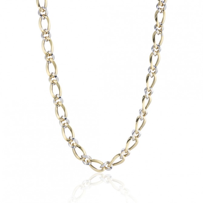 Experience timeless elegance with this stunning gold curb long chain necklace. Crafted with precision in 9ct white and yellow gold, each link glistens with a rich golden hue, making it the perfect accessory for any outfit.