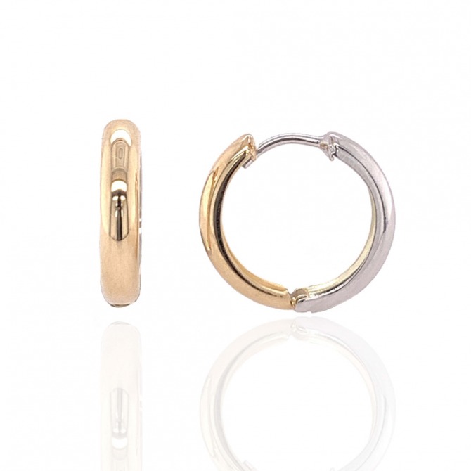 Sleek polished Earrings crafted from 9ct white and yellow gold - reversible earrings, fused together with a contemporary smooth design. A modern and unusual version of the classic Hoop Earring.