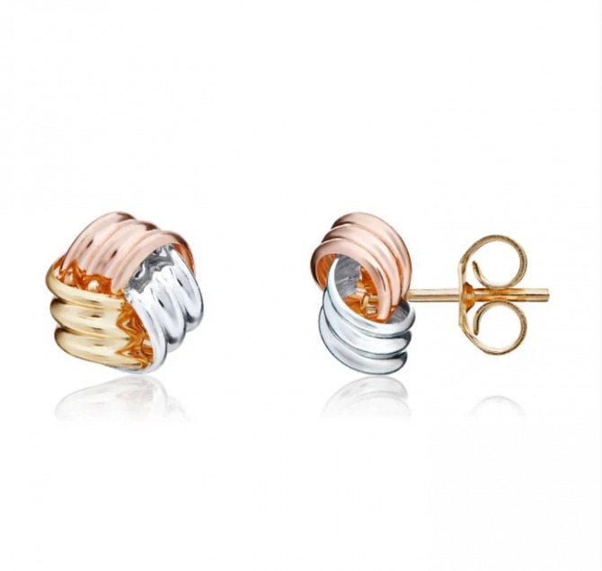 9ct Yellow White & Rose Gold Knot Stud Earrings