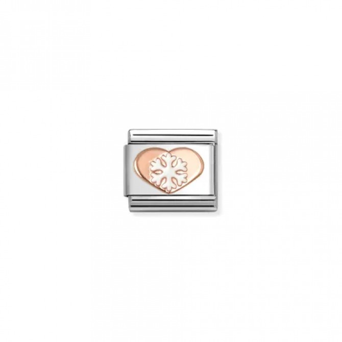 Original Nomination Composable Classic Link for Composable bracelet in stainless steel with rose gold Heart and precious Snowflake. This Link is the perfect way to light up your bracelet during the winter holidays. This accessory makes every moment special and unique.