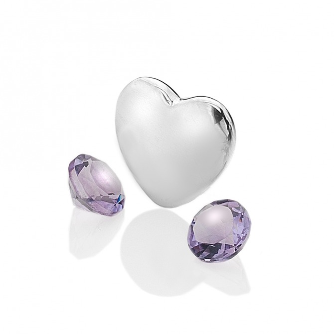 From the Hot Diamonds Anais Birthstones Collection: Fall in love all over again with our precious heart charm crafted from sterling silver & rose gold plate. Celebrated with two genuine Amethyst stones February's birthday! This charm measures 8mm high and 9mm wide.