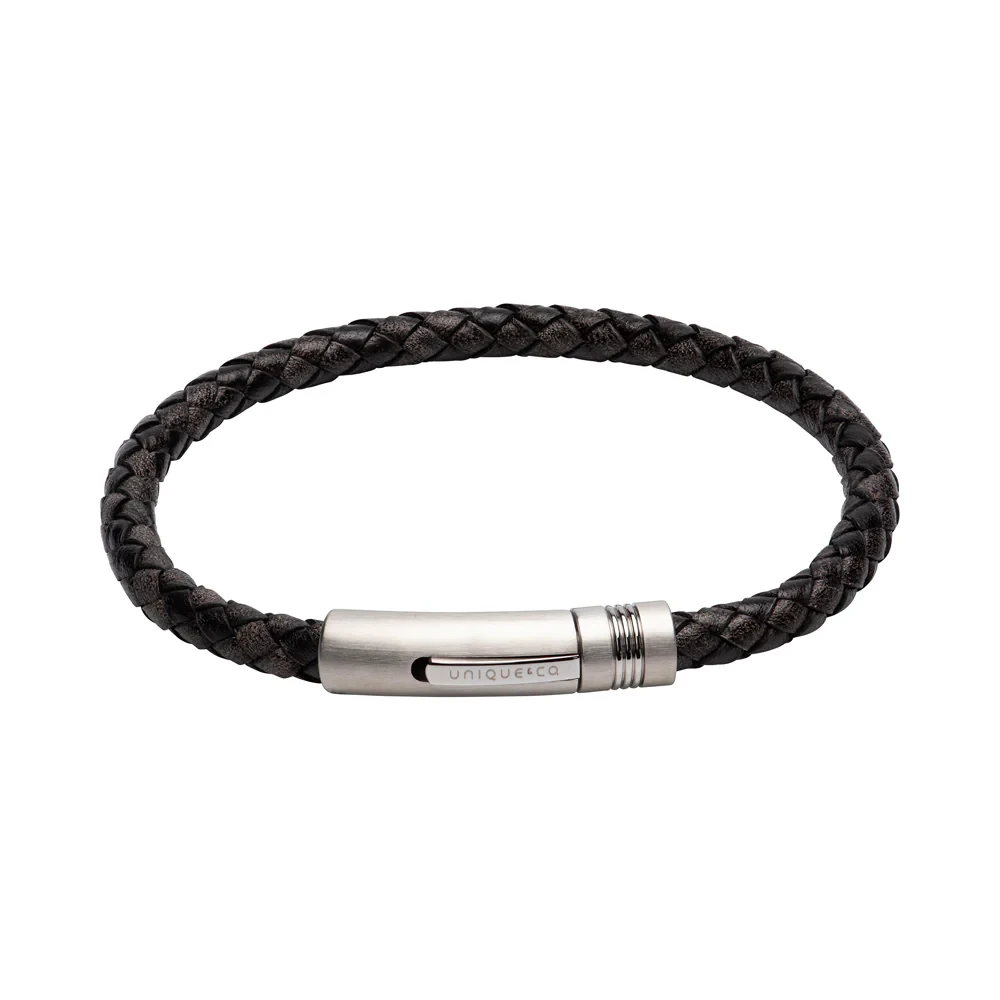 Unique & Co Stylish Leather Gents Bracelet. Black in colour with a Brushed Stainless Steel Magnetic clasp. Measures 19cm in length. The perfect gift for Father's Day or for Dad's Birthday or Christmas.