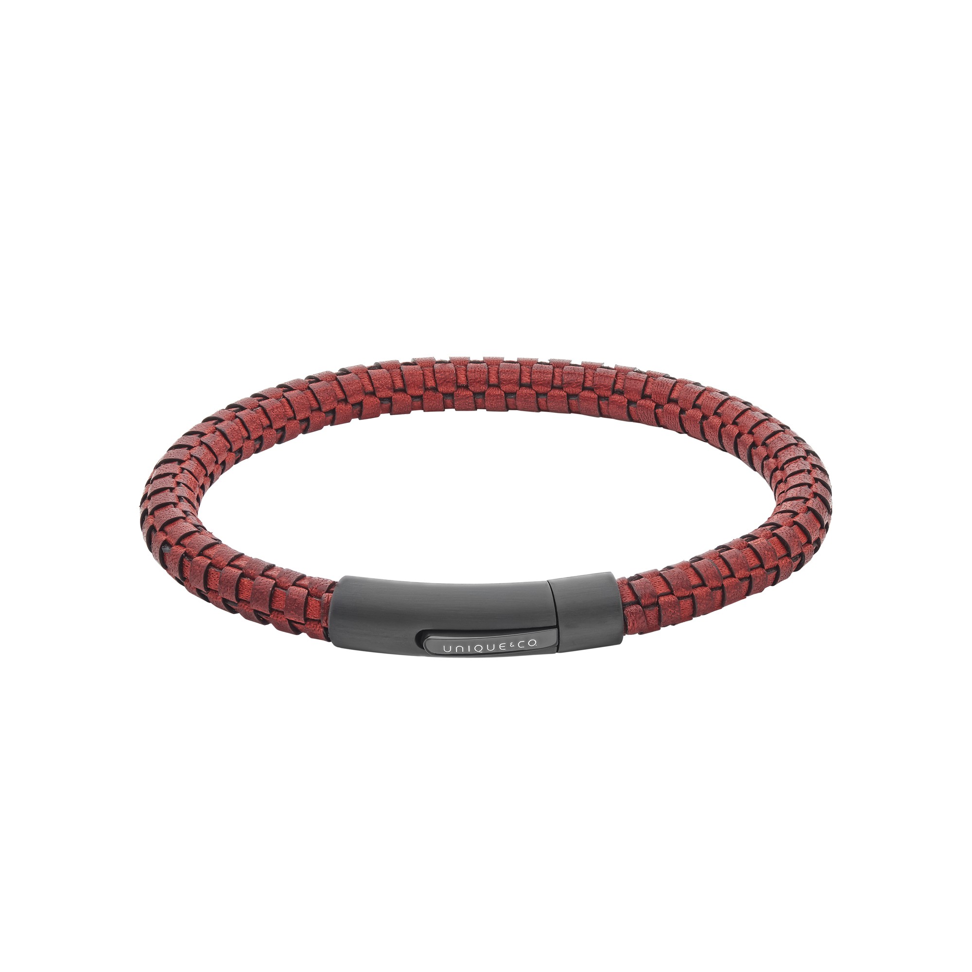 This gents bracelet features a robust antique red braided design, secured with a sleek stainless-steel clasp. The perfect accessory for a bold and confident look.