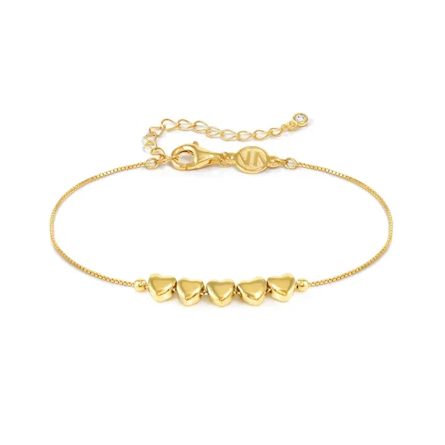 Sterling silver bracelet is available with white rhodium treated finish or yellow gold plated finish. Fastening with White Cubic Zirconia. The pendant symbols slide and move along the chain.