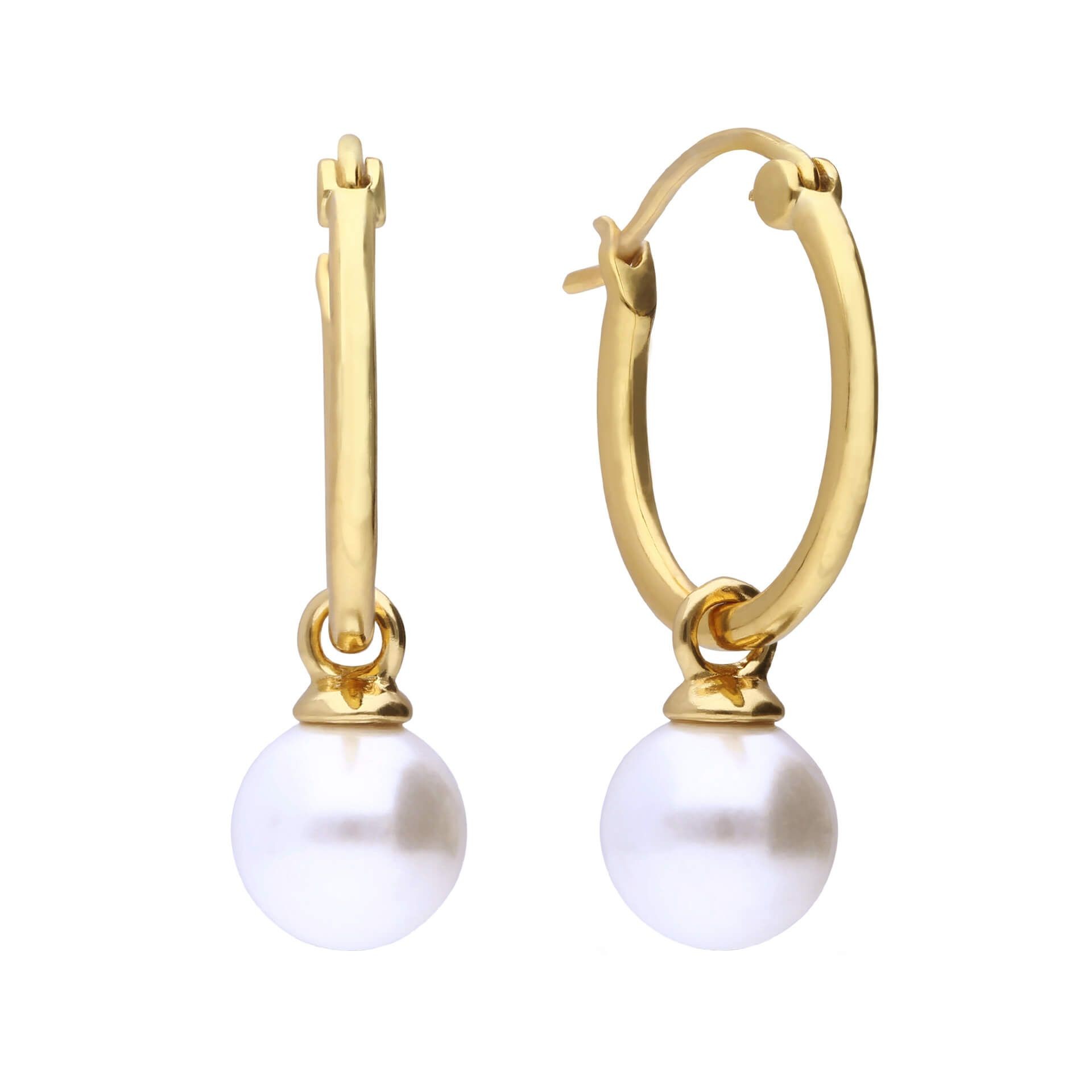 These spectacular assembled hoop earrings feature a stunning pearl drop charm and a luxurious polished finish. Crafted in 24ct yellow gold plated sterling silver, these earrings are great for gifting and can make the perfect bridal piece for anyone’s special day! Make sure to pair with the matching bracelet and necklace for a complete style!