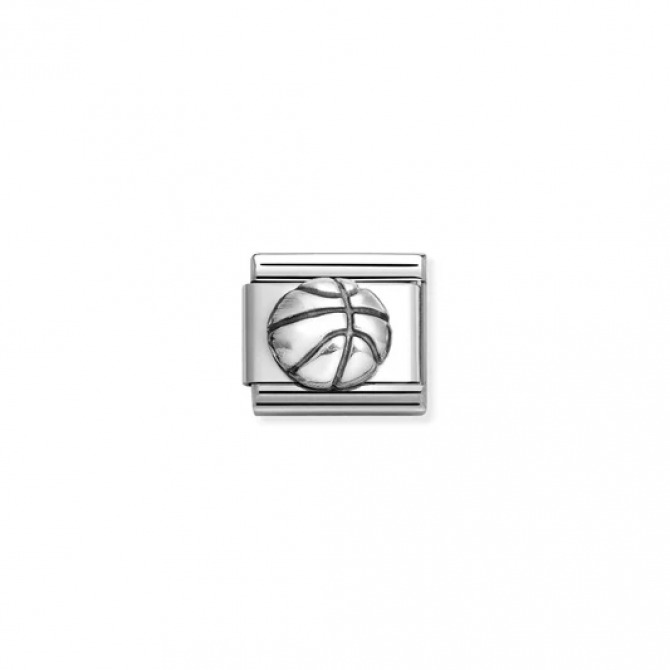 Original Nomination Classic Link in stainless steel and sterling silver with vintage effect on Basket Ball symbol. Made in Italy. Choose the Links dedicated to your favourite sports.