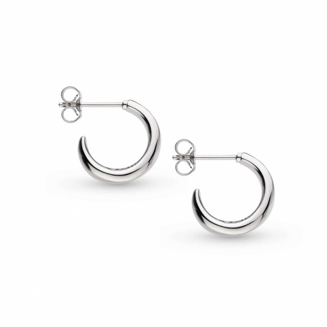 No compromise in style, the semi-hoop profile is the new favourite we didn't know we were missing! Tactile in its form, the bevelled edge twists around the crescent shape, made in rhodium plated sterling silver & finished with a classic stud fitting. Weighty, solid quality you will undoubtedly love.