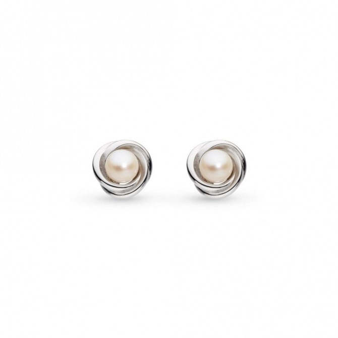 Our beautiful Trilogy of intertwined silver circles, combined with the gentle aesthetic of ivory freshwater pearls makes for a truly classic stud earring set. Demure with a touch of retro elegance, these earrings will take your look to new levels of sophistication.