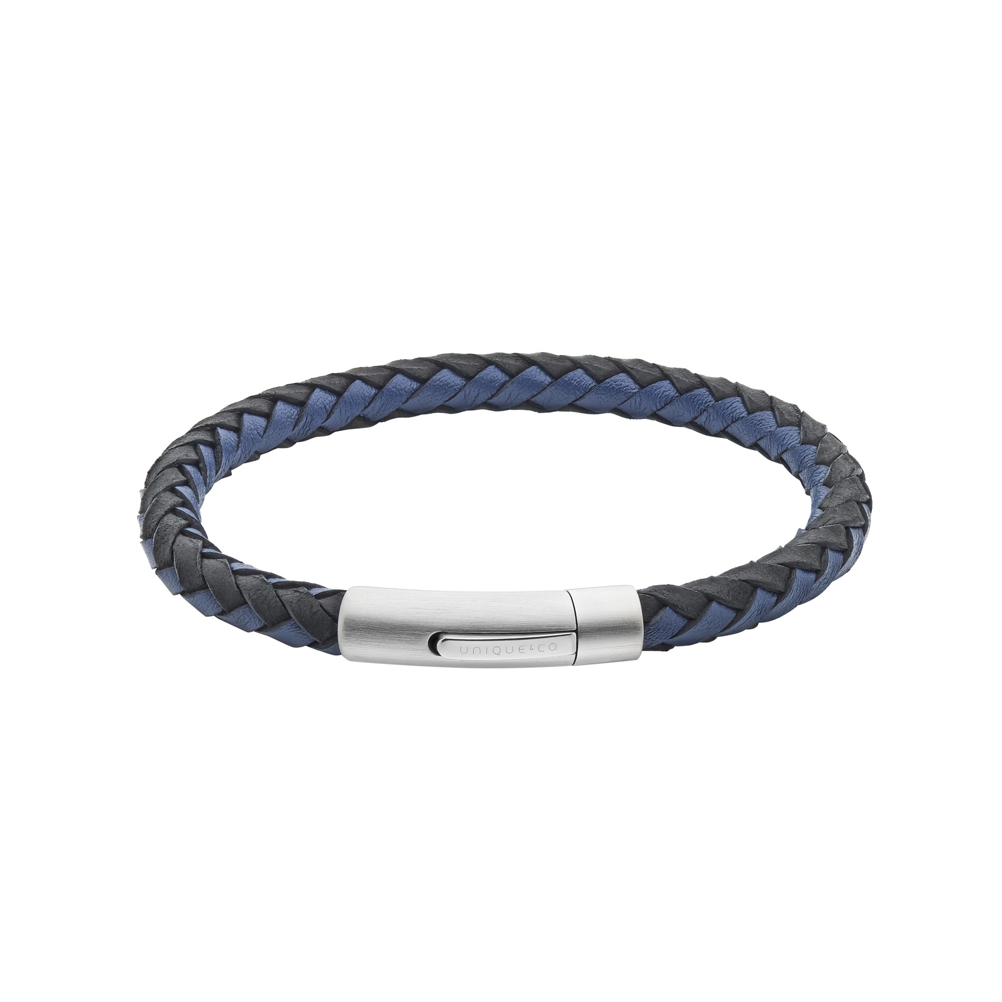 This gents bracelet features a robust blue and black braided design, secured with a sleek stainless-steel clasp. The perfect accessory for a bold and confident look.