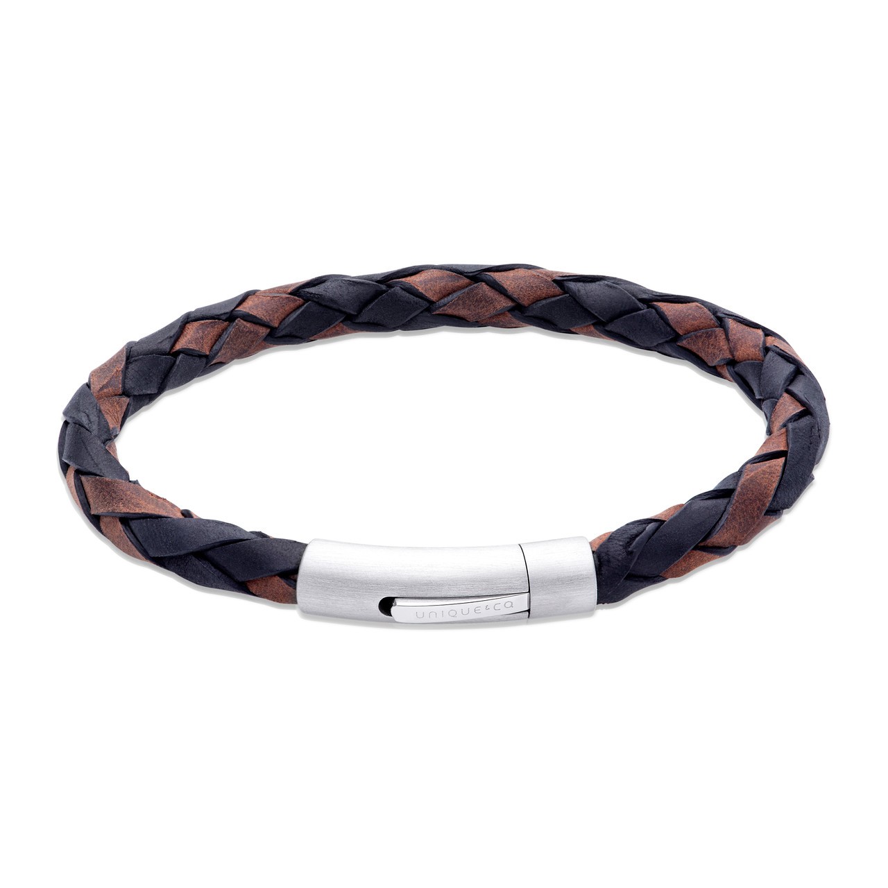 This bracelet features a robust brown and black braided design, secured with a sleek stainless-steel clasp. The perfect accessory for a bold and confident look.