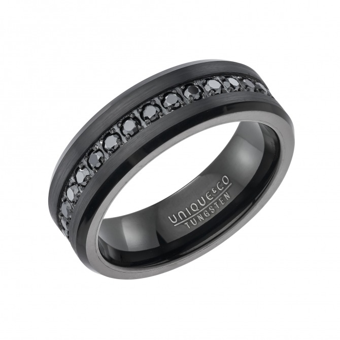Black tungsten set with black cubic zirconia 7mm ring.