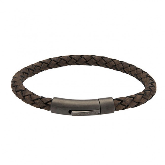 Gents Unique & Co Stylish Leather Bracelet. Brown in colour with a Stainless Steel Gun Metal Magnetic clasp. Measures 21cm in length. The perfect gift for Father's Day or for Dad's Birthday or Christmas.