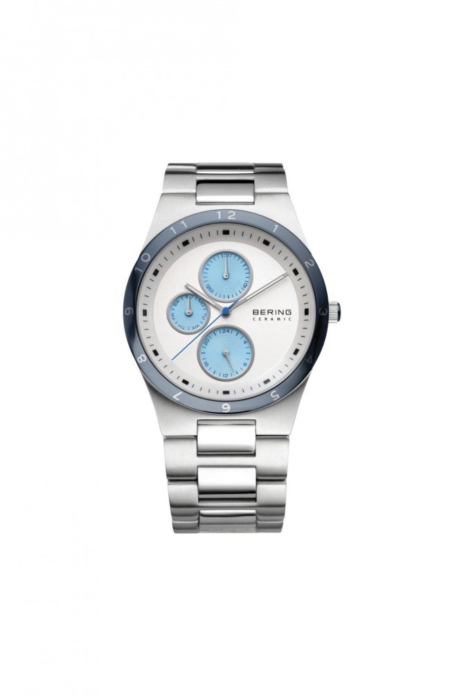 The sleekly burnished “Smooth Touch” surface of the ceramic, which makes it soft to the touch, integrated multi-function indicators (day/date/24hr time) and matching indices complete the look of Nordic beauty. An especially hard, crystal clear & scratch-resistant sapphire crystal ensures a clear view of the exquisite dial.