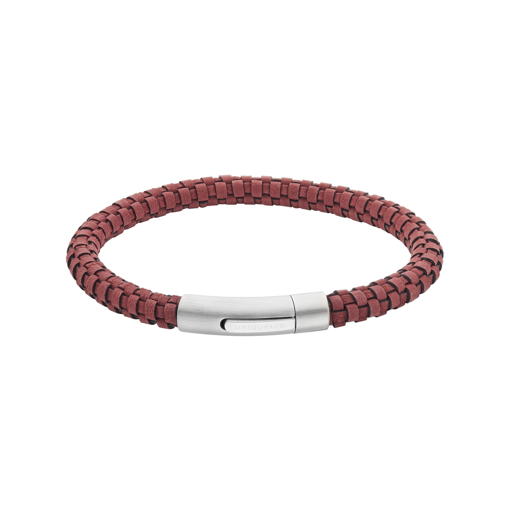This gents bracelet features a robust burgundy braided design, secured with a sleek stainless-steel clasp. The perfect accessory for a bold and confident look.