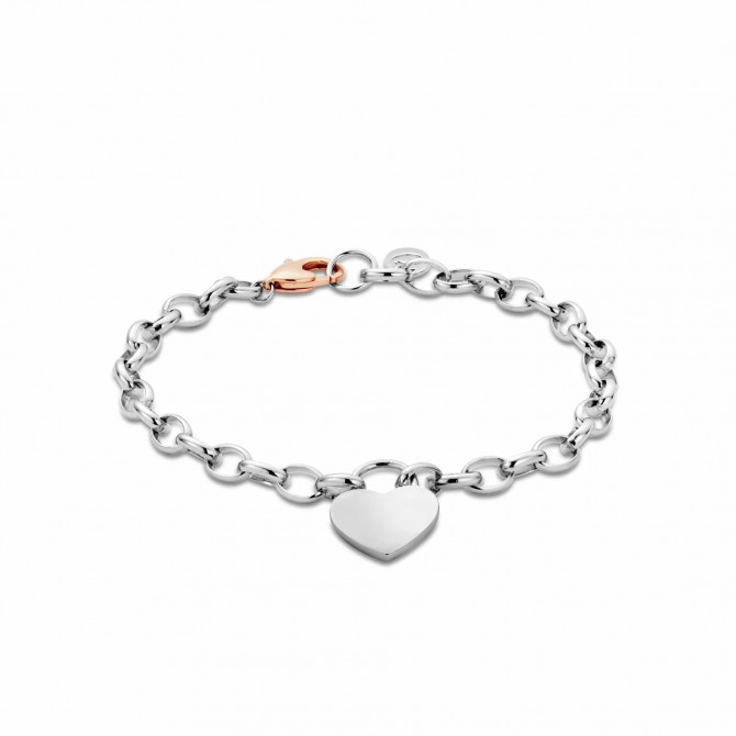 The Welsh word “Cariad” is a term of endearment meaning “beloved” or “sweetheart”. This Sterling Silver and 9ct Rose Gold Padlock Bracelet is the perfect gift to show someone how much you care. It features a polished heart padlock that, when illuminated, casts a delicate caustic reflection spelling ‘CARIAD’.