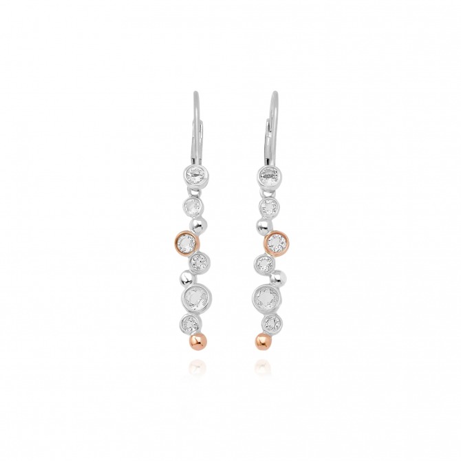 The most precious moments in life are made all the more meaningful when celebrated with a toast wishing love, luck and happiness. These stunning sterling silver and rose gold earrings are set with glowing white topaz, the perfect way to celebrate & commemorate every special occasion.