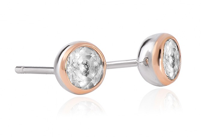 Lifes momentous occasions are made all the more meaningful when celebrated with those you care about and raising a toast wishing love luck and happiness. The inspiration behind this elegant and contemporary design draws on the captivating and exquisite bubbles in a glass of champagne - the perfect complement to any celebration. Set with sparkling white topaz the silver and rose gold Clogau Celebration stud earrings are the perfect accessory to any outfit.