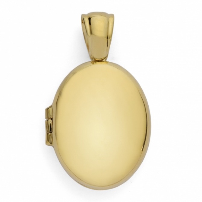 Hand crafted 9ct yellow gold oval locket. Measures 25mm by 19mm.