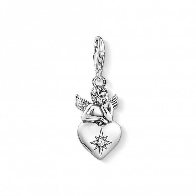 Personal guardian angel for love: this charm is filigree crafted with many details and made of high-quality 925 Sterling silver. It has a meaningful design: a guardian angel accompanies a heart that is decorated with a finely crafted star. A white zirconia stone sparkles in its centre.