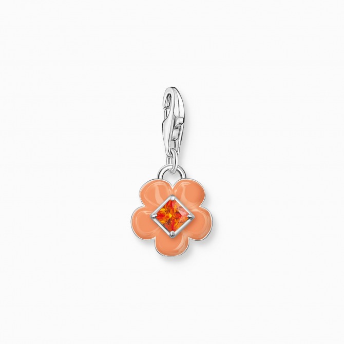 Pop Colours: The charm pendant consists of high-quality 925 Sterling silver. It is shaped like a three-dimensional flower and pastel orange, hand-painted cold enamel accentuates its design. The centerpiece is an orange stone with a square princess cut. Thanks to a cut-out on the pendant’s back, the stone shines right through and shines intensively. For individual jewellery creations, the charm has a snap hook. This way, it can be combined with Charm Club necklaces and bracelets as well as other charms.