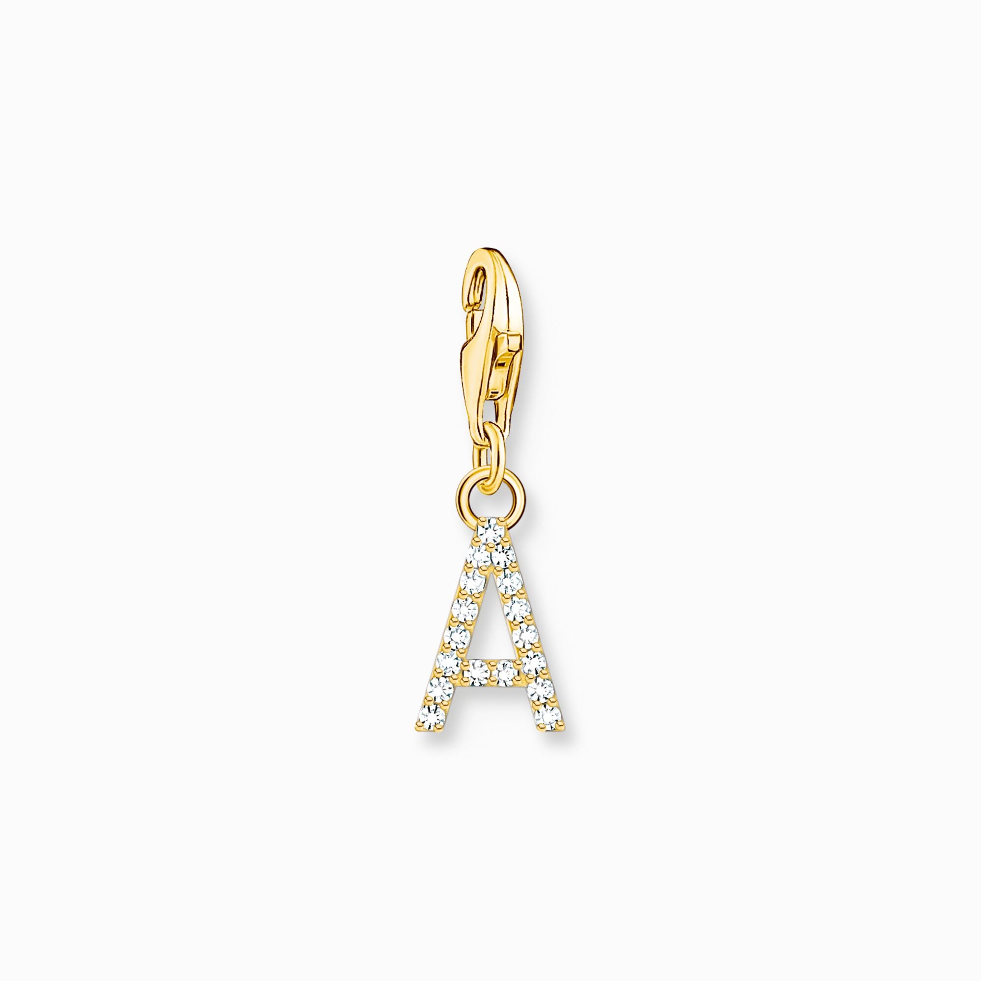Sparkling letter: The charm pendant is made of high-quality 18k yellow-gold plated 925 Sterling silver in the shape of an ace. It is elaborately set by hand with white zirconia stones. The pavé setting creates a beautiful coloured play of the stones. The letter charm has a lobster clasp. This allows it to be worn individually on Charm Club necklaces and bracelets. Combined with other charms, jewellery creations reflecting the personality emerge.