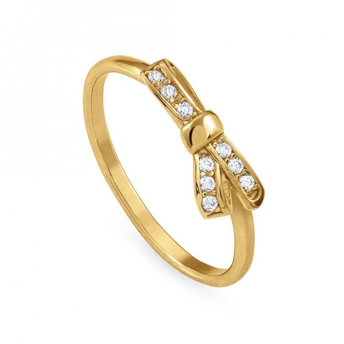 This Nomination ring has a thin rose gold plated band with a bow containing clear cubic zirconia stones.